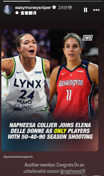 赛后,火箭球星杜兰特在社交媒体上,转发了科利尔加入180俱乐部的海报,并配文表示:“又一位成员,科利尔恭喜你打出了一个令人难以置信的赛季。”